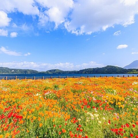 Lake Ikeda is the largest caldera lake in Kyushu, created by volcanic activity, with a circumfere...