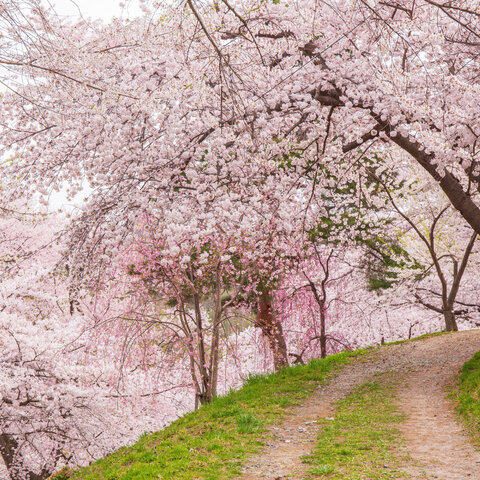 Eboshiyama Park in Nanyo City has over 1,000 cherry trees, including Somei Yoshino, weeping cherr...