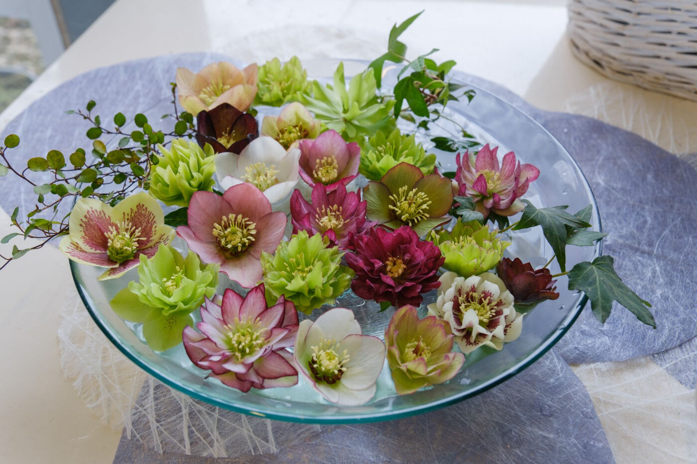 On this day, gorgeous floating flowers were made from the Christmas roses blooming in the facility. There are almost no two floating flowers that are the same (I think there are probably 20 types), so at least these varieties were planted.