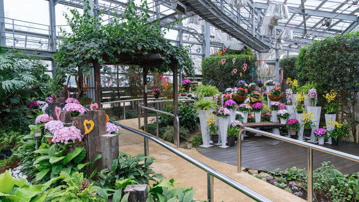 The walkway leading from the main building to the glass room doubles as an event space where seasonal flowers are displayed and sold, and works from sketching competitions and photo contests are displayed. Walking around the exhibits indoors is also a way to enjoy yourself on bad weather days.