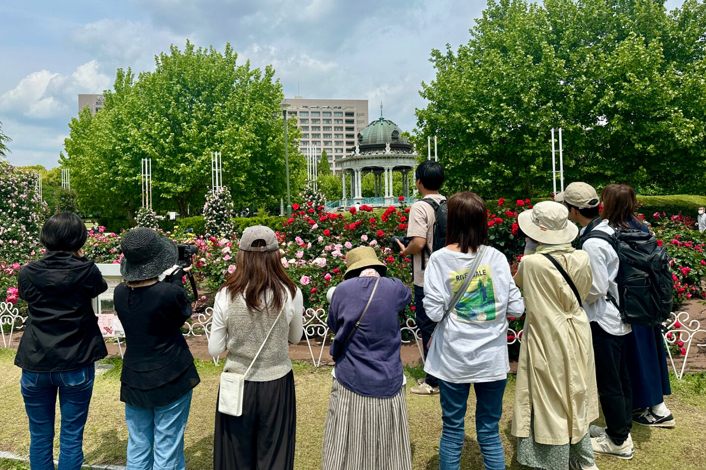 5月12日、初夏の陽光が降り注ぐ名古屋市の鶴舞公園で、「はなまっぷ」のアンバサダーたちと満開の春薔薇をテーマにした撮影イベントを開催いたしました。