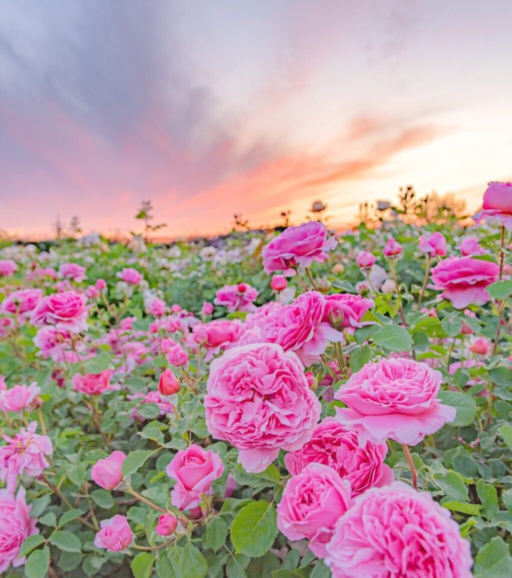 世羅高原の冷涼な気候を活かしイングリッシュローズを長期開花させています。