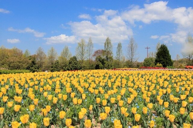 約350ヘクタールと広大な園内には5か所の花スポットがあり、季節ごとに楽しめます。