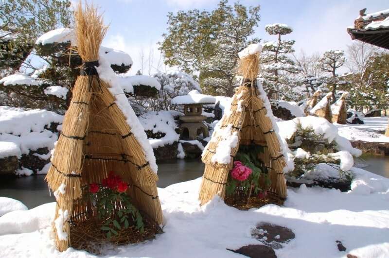 ・里山の植物【ひばの里】 ハナショウブ・アジサイなど、こどもの頃親しんだ里山の花々が見れます。冬には菰を被った冬咲きボタンも鑑賞できます。