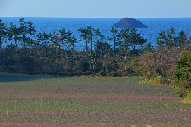 東京ドーム約26個分もの広大な農地に、小さな紫の花をつけたらっきょうの花が畑一面に咲き誇ると、まるで赤紫のじゅうたんをひいたようです。