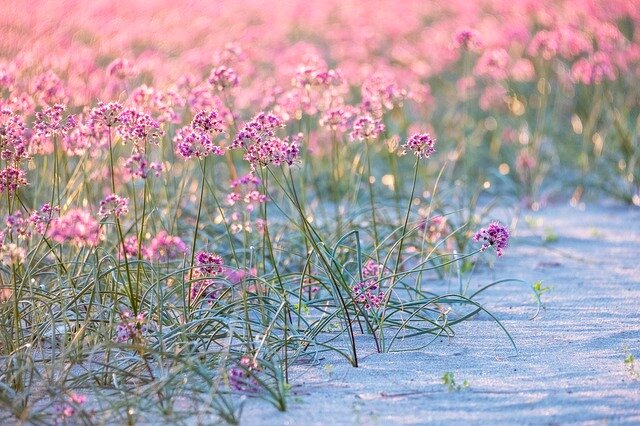 鳥取砂丘オアシス広場周辺に広がるらっきょう畑では、10月下旬~11月上旬にらっきょうの花を見ることができます。