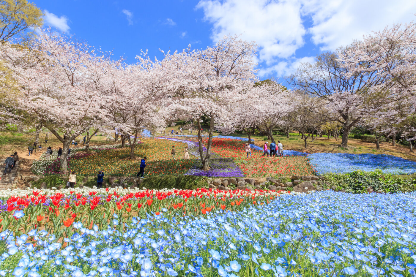 標高268mの「火の山」山頂にある公園。日本夜景遺産に登録されています。約1,000本のソメイヨシノやヤマザクラとチューリップの共演、ツツジは約25,000本の名所。