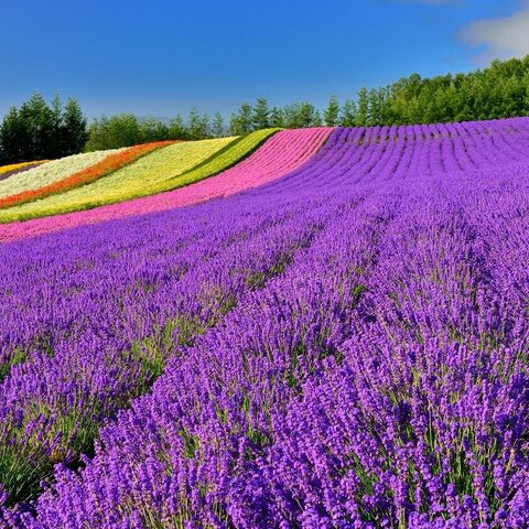 北海道中富良野町にある農園です。ラベンダー、ポピー、コスモス、カスミ草などのお花畑が十勝岳をバッ...