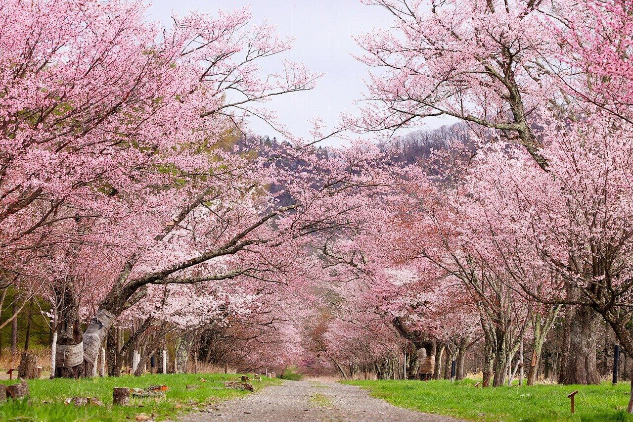 家畜改良センター新冠牧場(にいかっぷぼくじょう)を視察する皇族方の行啓道路(ぎょうけいどうろ)として造成された、幅二十間(36m)、距離8km、直線7kmの道です。新ひだか町静内にあります。2,200本のエゾヤマザクラ、カスミザクラ、ミヤマザクラが並木として植えられています。「日本の道百選」「さくら名所100選」「北海道遺産」などに選ばれている名所。