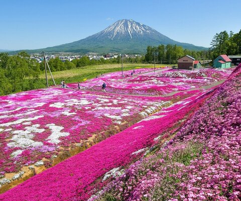 終戦直後にもらった一握りの芝桜がきっかけで自宅に小さな芝桜の公園を作った若者農家。その芝桜に感銘をうけた藻琴山温泉管理公社から「芝桜で村の憩いの場をつくってほしい」と頼まれたため離農して、8年もかけて作られました。今では見事な観光名所となっています。東の山麓から遊覧車に乗って頂上まで行くこともできるので、体力に自信のない方でも大丈夫。芝桜の中をゴーカートに乗ることもできたり、キャンプ場や温泉施設まであったりと思う存分芝桜に囲まれて過ごすことができます。