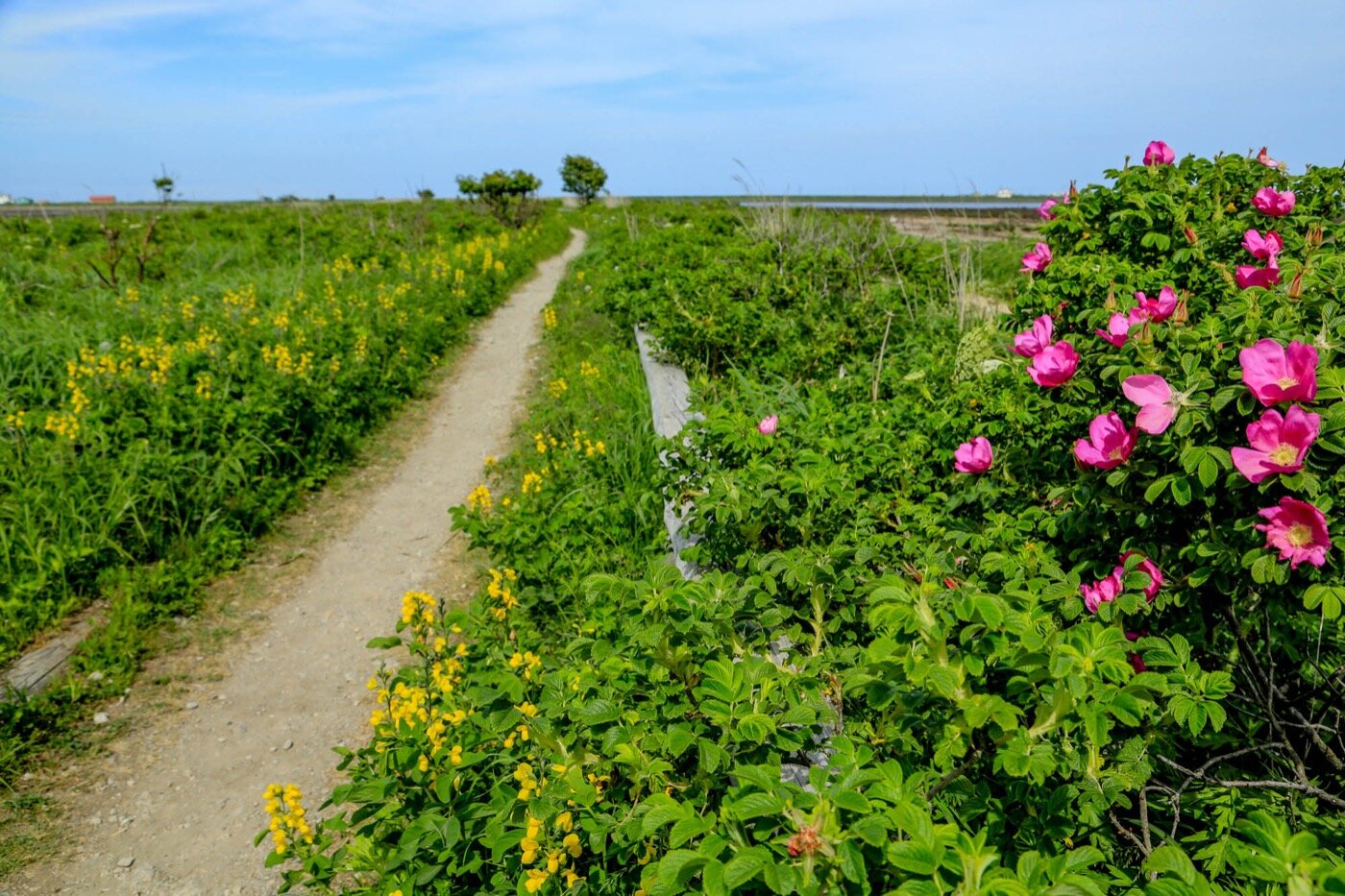 知床半島と根室半島の中間に位置し、「この世の果て」とも言われ、トドマツが風化したトドワラなどの独特な景観で知られる野付半島。そこに至る自然探勝路沿いには、ハマナスやセンダイハギ、エゾカンゾウなど、色鮮やかな自然の花が咲いており、散策しながら楽しむことができます。近くにはタンチョウと呼ばれる鶴の営巣地もあり、運が良ければ見られるかもしれません。