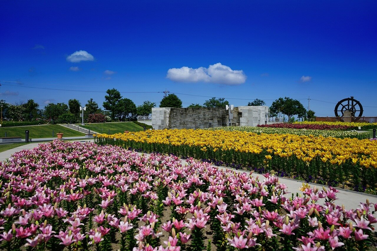 福井県北部、坂井市にある公園です。6月ごろ15万輪のユリが咲きます。夜はイルミネーションやプロジェクションマッピングが一年中楽しめます。250種のバラ園も公園内にあります。