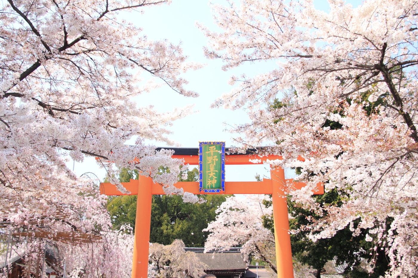 平野神社の桜の歴史は非常に古く、平安時代から桜の名所として知られていました。境内には、早咲きから遅咲きまで約60種、400本以上の桜が植えられており、3月中旬~4月下旬の間に多様な種類の桜が楽しめます。代表的な桜として、「魁(さきがけ)」や「寝覚(ねざめ)」など、平野神社にしか見られない貴重な桜も含まれています。毎年4月10日には、騎馬武者など総勢約200名による時代行列「桜花祭(おうかさい)」が行われています。