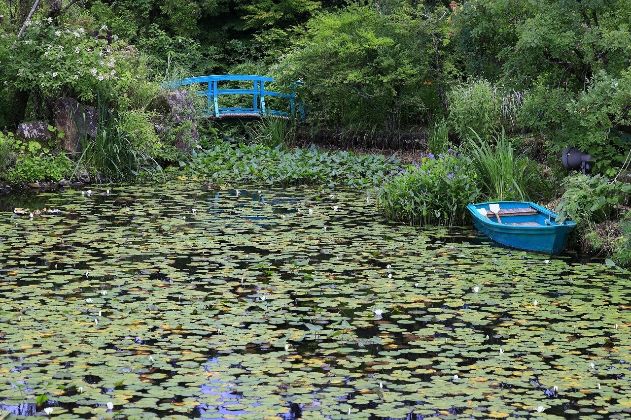 ガーデンミュージアム比叡は、標高840mの比叡山頂にフランス人デザイナーが設計した庭園美術館として2001年にオープンし、1.7haの園内に1,500種10万株の花が咲き乱れています。園内はモネやゴッホなどがイメージした風景が再現されており、モネの代表作『睡蓮』をイメージした回遊式庭園「睡蓮の庭」など、6つの庭を画家たちの作品の陶板画と共に楽しむことができます。またローズガーデンでは6月中旬頃から10月下旬頃にかけて、ツルバラ、オールドローズ、モダンローズ、修景バラなど約180品種・約1,000株のバラが見頃を迎え、8月にはヒマワリやクレオメ、スイレンが楽しめます。