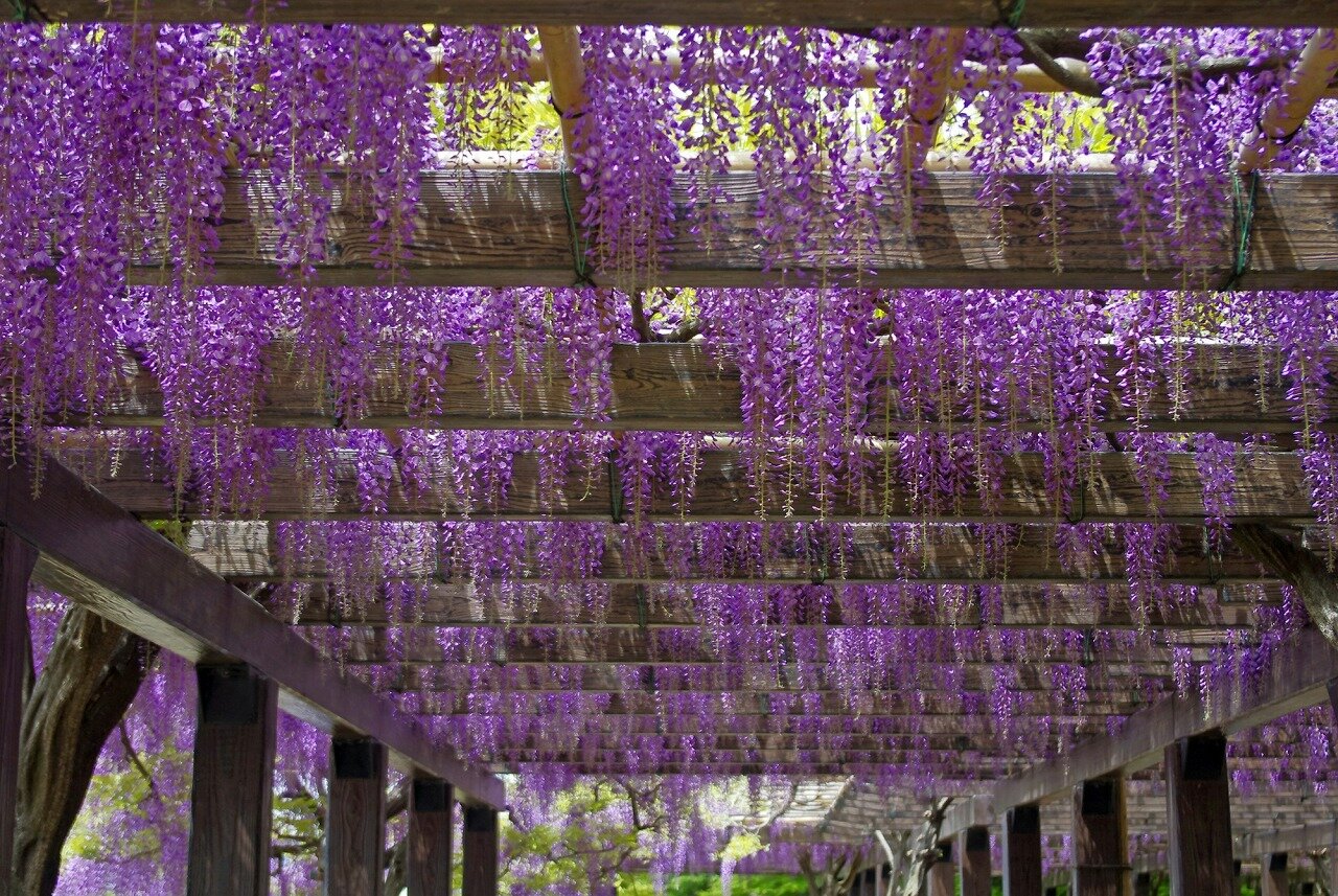 京都市南区にある下水処理場です。120mの藤棚の回廊があり、4月下旬、施設とともに一般公開されます。