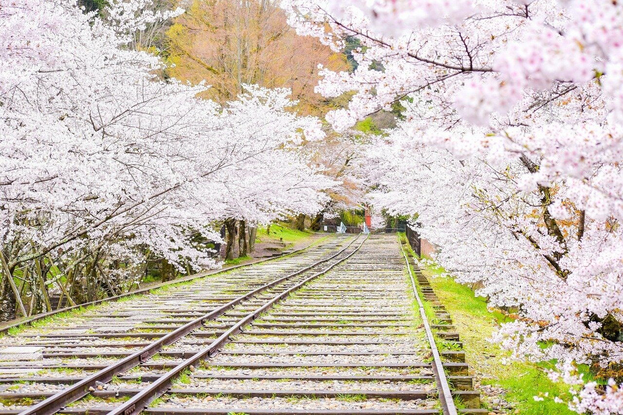 インクラインは、標高差の大きい二つの水路の輸送をさせる装置のことです。蹴上インクラインは、長さ582m、標高差36mの傾斜鉄道です。現在は使われていません。跡地に、ソメイヨシノとヤマザクラが90本植えられています。線路の上に桜が咲きます。