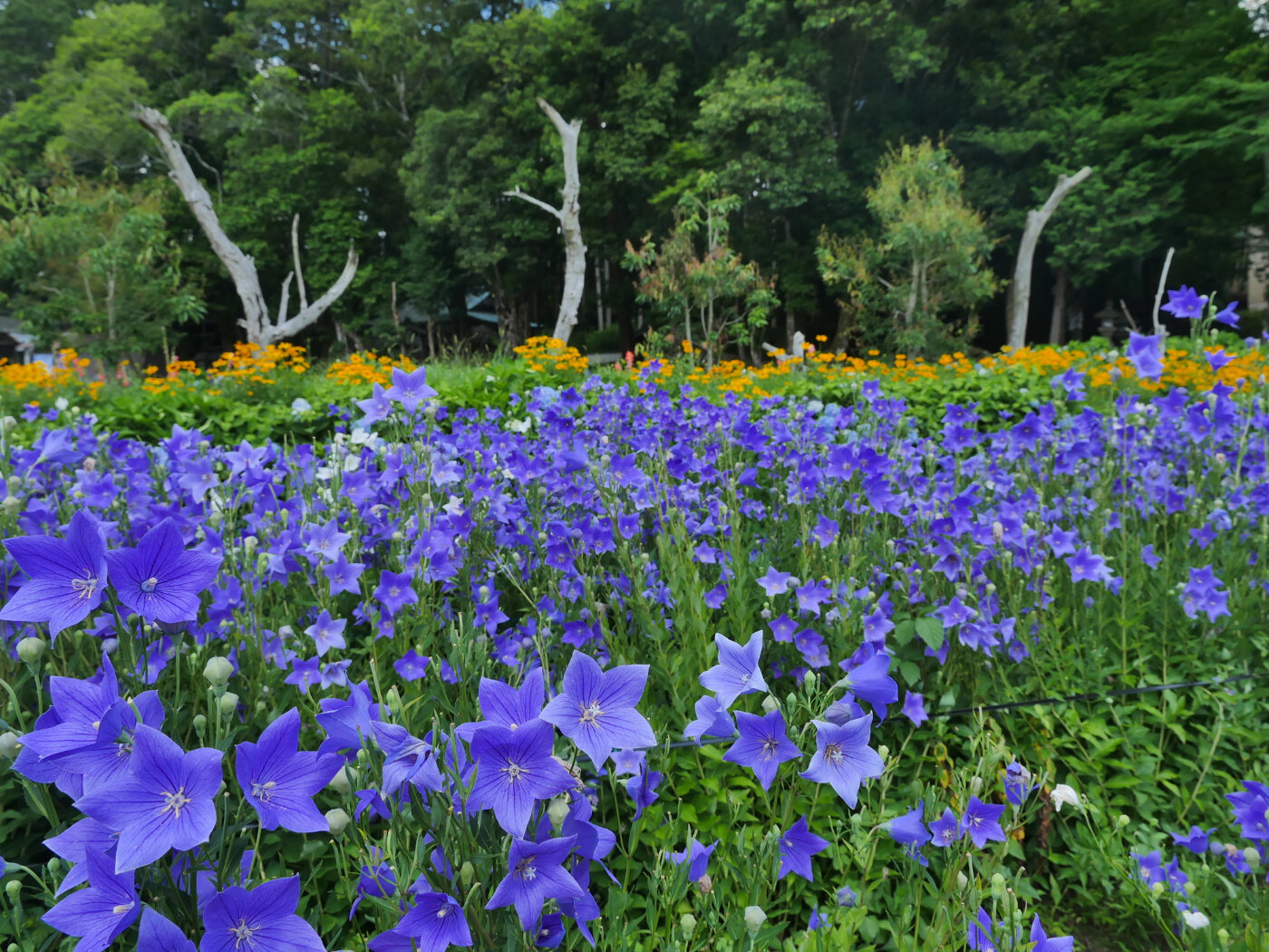 明智家の家紋である桔梗が咲く谷性寺(こくしょうじ)は、京都府亀岡市に位置する寺院で、「日本三大ききょう寺(ほかは兵庫県の遍照寺、静岡県の香勝寺)」の一つです。また境内に光秀公首塚があることから光秀寺とも呼ばれいます。6月下旬から7月下旬には門前の「ききょうの里」が開園され、紫や白色のききょうをはじめ、ピンクや八重咲きなど約5万株のききょうや、その他にも紫陽花やルドベキアなど約15,000株の初夏の花が楽しめます。