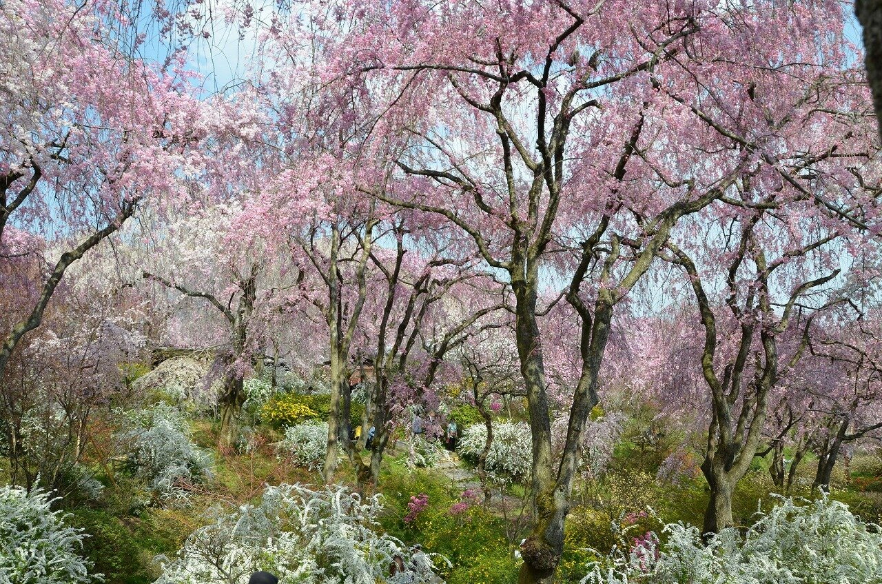 金閣寺の北西にある桜の名所です。桜は、色々な種類が400本植えられています。その他、日向みずき、石楠花、レンギョウなど、色々な花が咲きます。