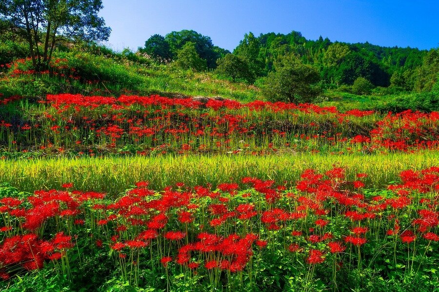 稲渕の棚田 いなぶちのたなだ 奈良県 平安から室町に開墾され日本の棚田100選にも選ばれている棚田に彼岸花が彩りを添えます。 Webサイト http://www.pref.nara.jp/42455.htm タグ検索 稲渕の棚田 ヒガンバナ 棚田 奈良県 関西 月 9月 都道府県 奈良県