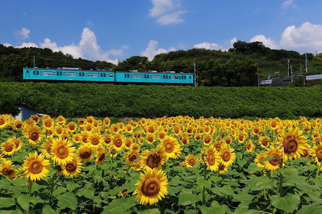 遊休農地の再生と循環型社会のシンボルとして、10万本ものひまわりが植えられています。