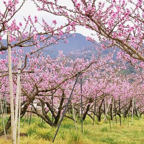 紀ノ川沿い南側、紀の川市桃山町には、ひと目十万本といわれる桃の畑が広がります。4月上旬は桃源郷にな...