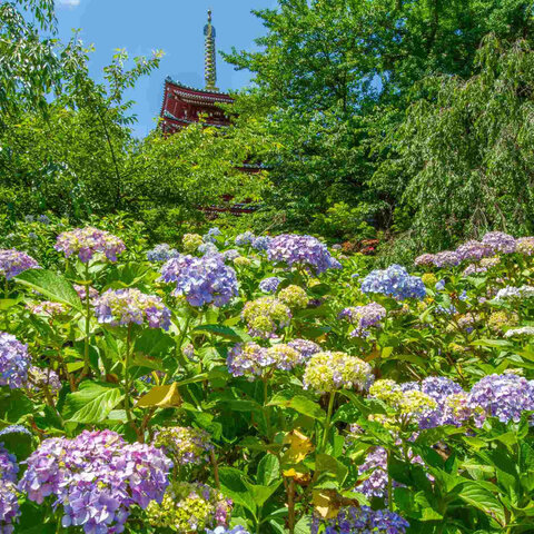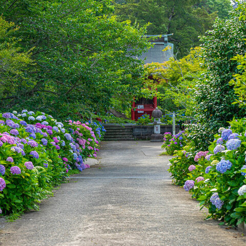 房総のあじさい寺と呼ばれるお寺。境内に2万株のあじさいがあります。