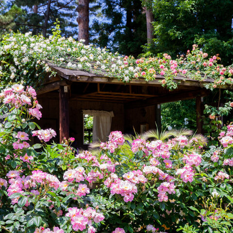 ヘリテージローズ(野生種とオールドローズ)を中心に1,250種2,500株のバラがあります。海外で、殿堂入...