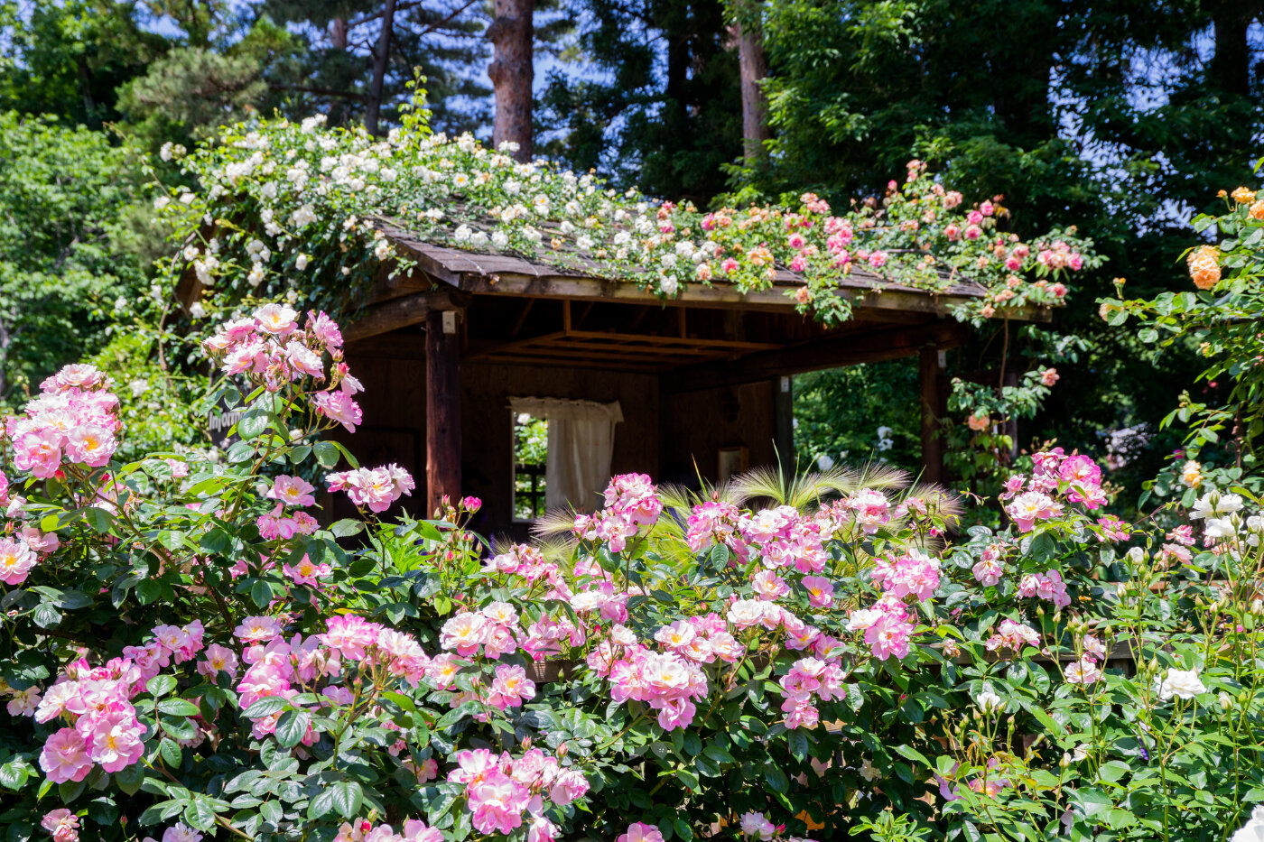 ヘリテージローズ(野生種とオールドローズ)を中心に1,250種2,500株のバラがあります。海外で、殿堂入りバラ園、優秀庭園賞の受賞歴のあるバラ園です。