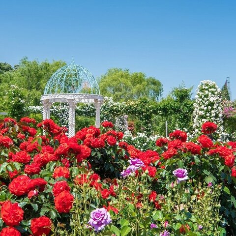 1,600種、10,000株のバラを中心に、年間を通して四季折々の草花や樹木が楽しめるローズガーデン。おしゃ...
