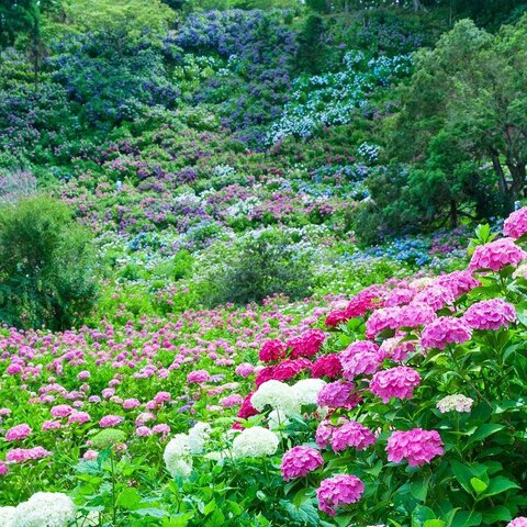 平成 4 年より植栽が始められ、総面積 72,000m2の山一帯に 18,000 m2、250 品種・10,000 株以上のあじ...