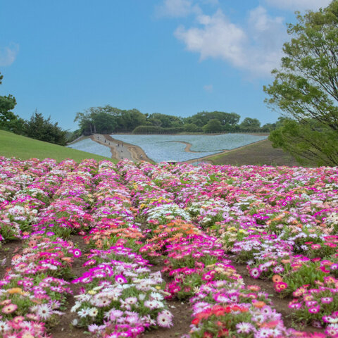 花と緑のテーマパーク。代表的な花は以下の通り。 芝桜7万株、ネモフィラ7万株、ヒナゲシ(シャーレーポ...
