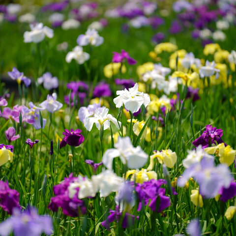 「四季折々の花がお出迎え」をキャッチフレーズにした公園。3,600平方メートルの菖蒲田に約15,000株の花...