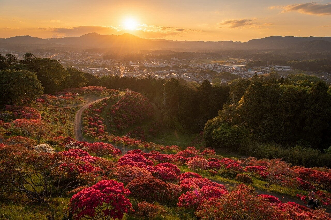 笠間つつじ公園 かさまつつじこうえん 茨城県 茨城県中央の笠間市にあり、標高143m、面積約7haの見晴らしの良いつつじの公園。約8、500株の様々な品種が小高い山一面に植えられており色鮮やかな景色が広がります。山頂は芝生広場となっていて、一面のツツジ越しに笠間の街並みが広がる大展望。夕暮れ時は一段とドラマチックな光景となりどこか異空間に来たような気分にもなれる場所です。 Webサイト https://www.kasama-kankou.jp/section.php?code=499 タグ検索 笠間つつじ公園 ツツジ 茨城県 関東 春 月 5月 都道府県 茨城県