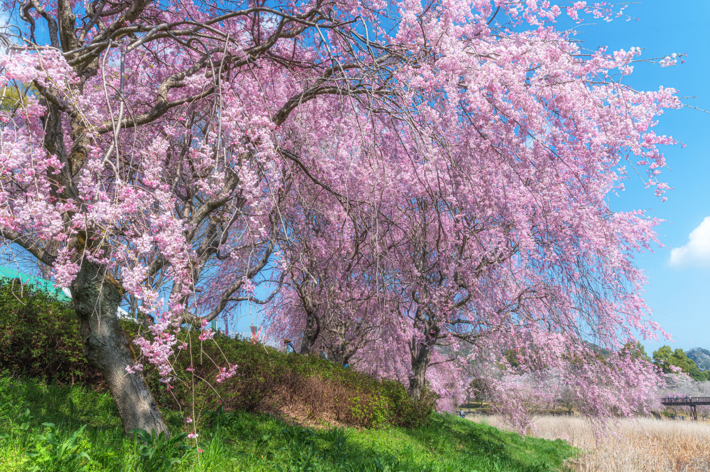 園内には、ソメイヨシノ、しだれ桜、八重桜が500本あり、約1ヶ月の間桜が楽しめる。特にしだれ桜のトンネルは有名。