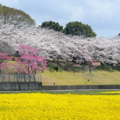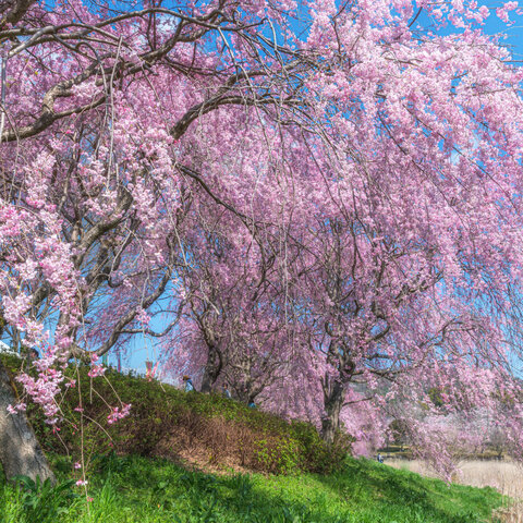 園内には、ソメイヨシノ、しだれ桜、八重桜が500本あり、約1ヶ月の間桜が楽しめる。特にしだれ桜のトン...