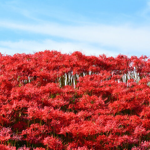 源氏川の両岸約700mを300万本といわれる彼岸花が真っ赤に埋め尽くす名所