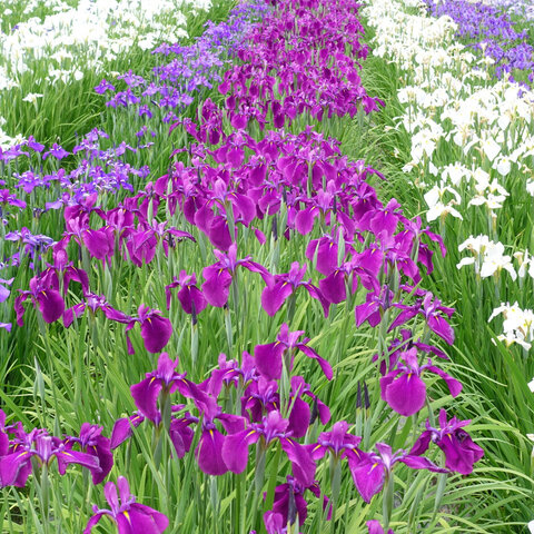 500種100万株といわれる花菖蒲の名所。あやめまつり期間中は嫁入り舟、ろ舟遊覧などのイベントもあります。