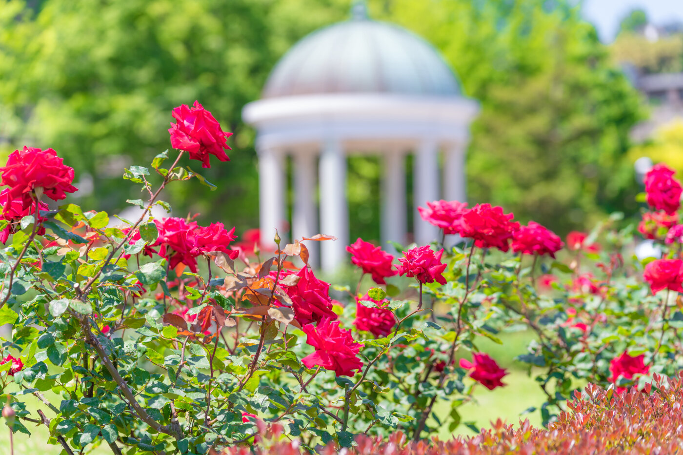 約1,300本のバラが植栽されたフランス様式庭園のある市営公園。入園無料です。