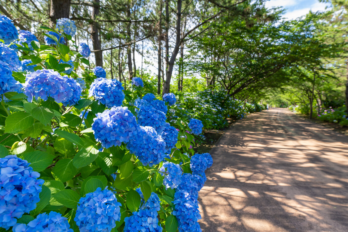 シーパラダイスで有名な八景島には、2万株のあじさいが咲きます。また、八景島のほぼ中央には「丘の広場バラ園」があり約100種500株のバラが咲きます。