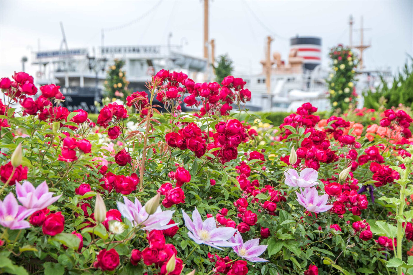 公園内にある未来のバラ園には160種1,900株の薔薇。入園無料で楽しめます。