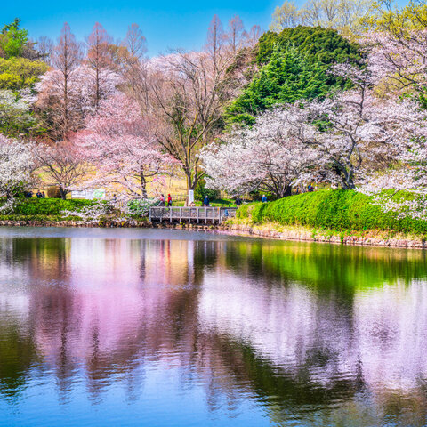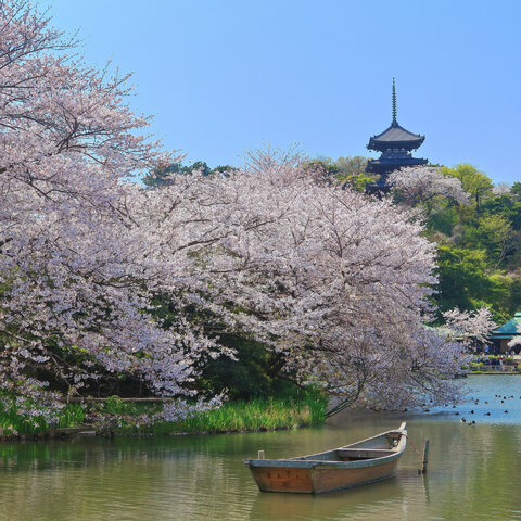 「さくらの名所100選」に選出された、およそ70品種、約1,000本の桜が咲く名所。