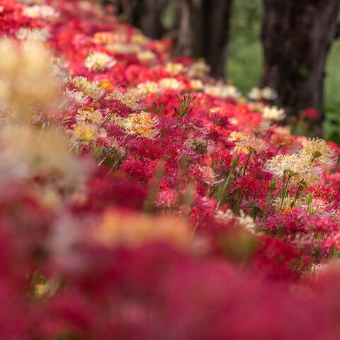 春は桜と菜の花、秋は早咲きの彼岸花が咲きます。