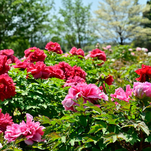 市の花「ぼたん」が約5,000株ある公園。ゴールデンウィーク(4月中旬から5月上旬)のころが見頃。