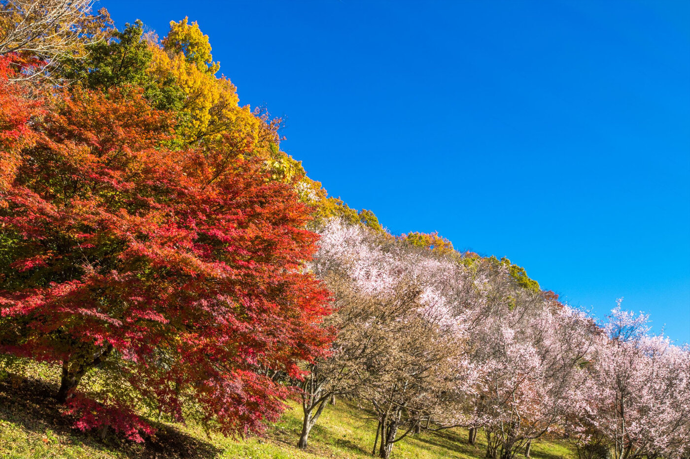 毎年10月最終日曜日には「冬桜まつり」が開催されます。見頃の時期の土日祝は、一方通行の規制がありますので、HPを参照してください。冬桜と紅葉のコラボが美しい公園です。