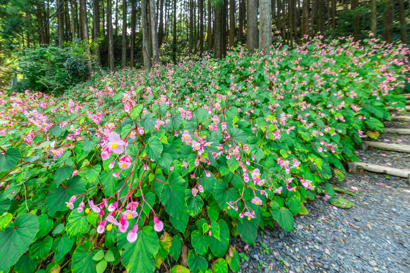 小川町腰越の二十二夜塔付近にある秋海棠の群生地。ベゴニアの仲間の秋海棠が8月下旬~9月中旬頃に可憐な花を咲かせます。
