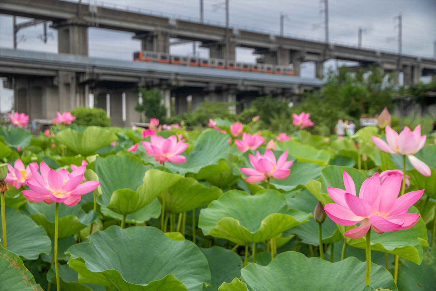 埼玉新都市交通ニューシャトルを背景に蓮を撮ることができます。