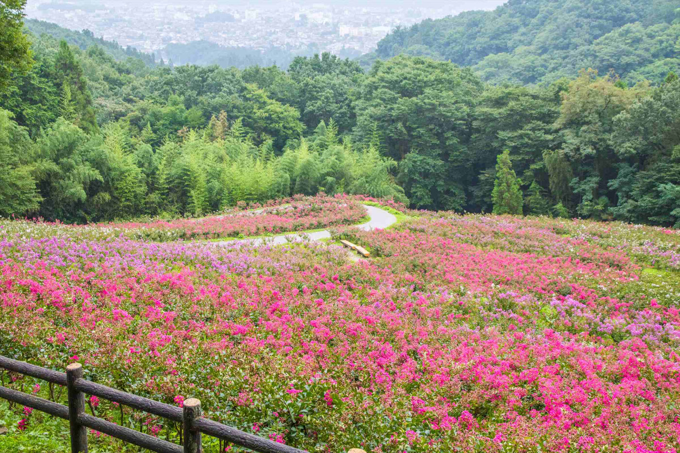 斜面広場はサルスベリで埋め尽くされていましたが、2020年の台風19号の被害で閉鎖中です(2023年現在)。早く復旧されることを願います。
