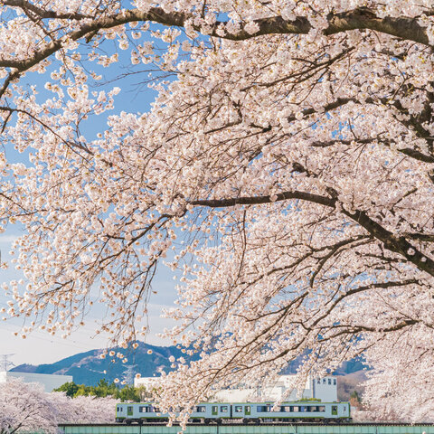 都幾川右岸およそ2kmに約250本のソメイヨシノが咲く桜並木。学校橋付近では菜の花とのコラボも楽し...