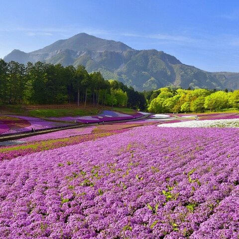 勇ましい山容をした秩父のシンボルである武甲山。その姿に彩りを添えるように麓では芝桜の絨毯が広がり...