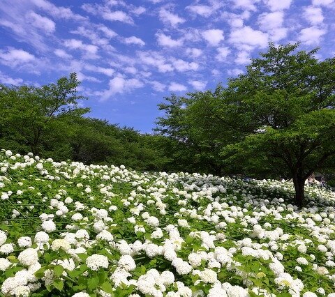 春は菜の花と約1000本のソメイヨシノが1kmにわたって咲き誇る桜の名所です。6月には100種1万株といわれ...